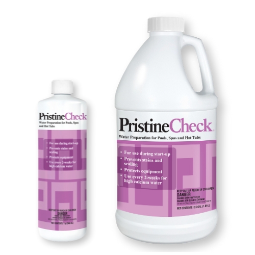 PristineCheck® is a water prep. It is added to pools and spas before the introduction of PristineBlue® to sequester calcium and other minerals for maximum effectiveness. It can be used regularly during your two-week maintenance when high calcium hardness is a concern.